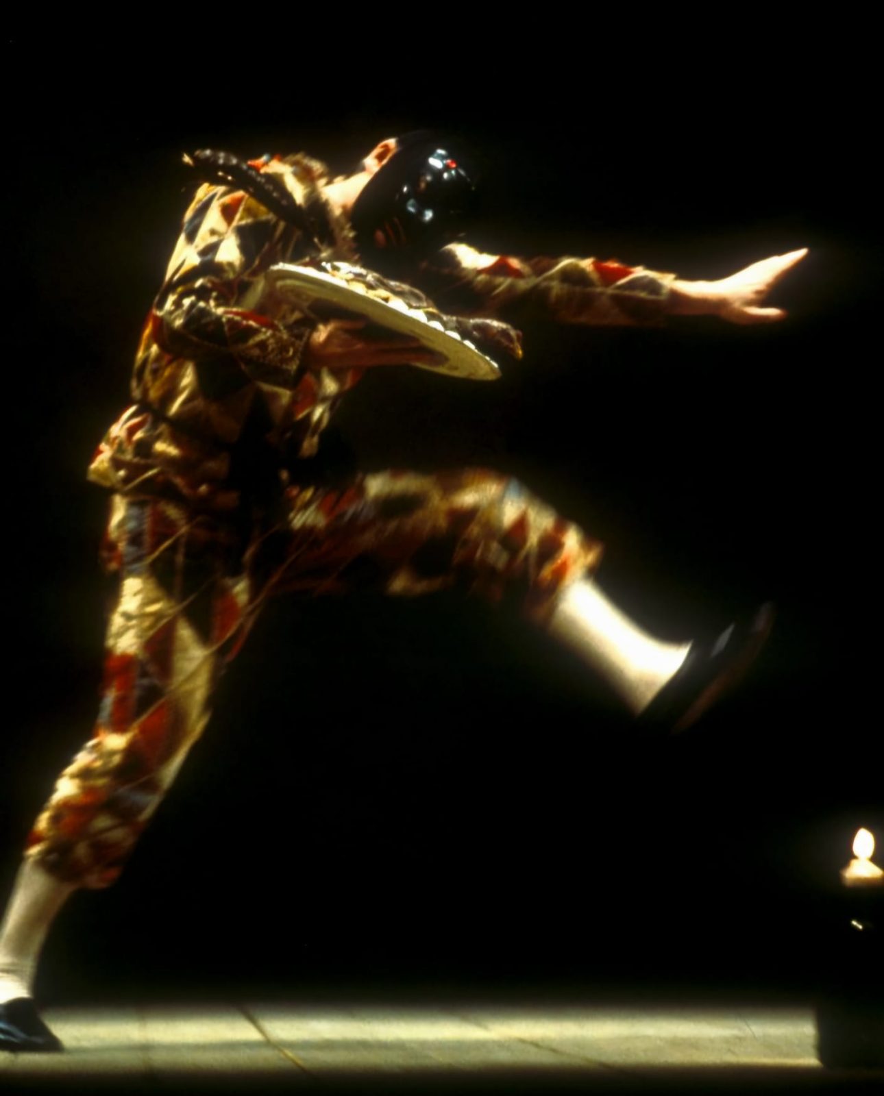 Tutto ciò che accade sul palco di questo spettacolo è anti-naturalistico, è una metafora del reale. Arlecchino è una sorta di demone, un essere dell’aldilà, al di sotto, perennemente in lotta per la sopravvivenza.